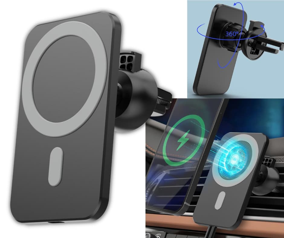 Detta tillbehör kommer med en 360 grader vridbar led som gör det enkelt att justera vinkeln på din mobil efter dina behov. Den inbyggda trådlösa laddaren ger stabil ström och temperaturnivå för säker och pålitlig laddning av din iPhone.