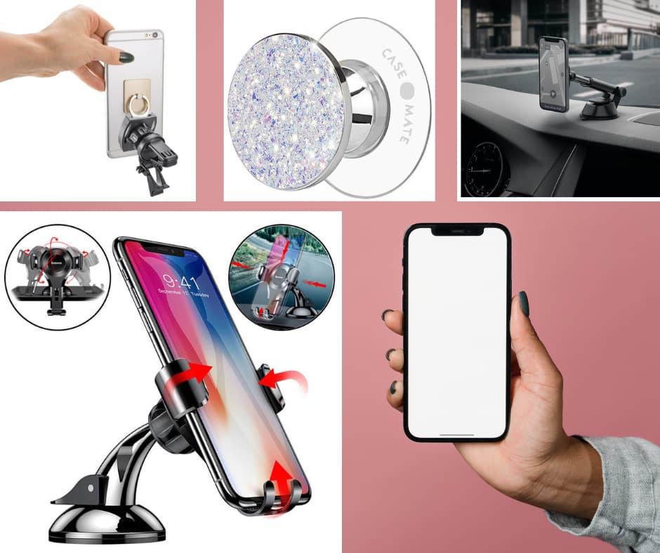 Du kanske inte ser dem som mobilhållare, men ringhållare och PopSockets fungerar inte vara som grepp, men även som stativ, vilket gör dem till mobilhållare. Dessa hållare kommer oftast med en häftande baksida som ger ett starkt grepp på din mobil.