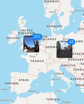 5. Du får en kartöversikt över fina foton med uppstickande bilder på en karta. Nypa för att