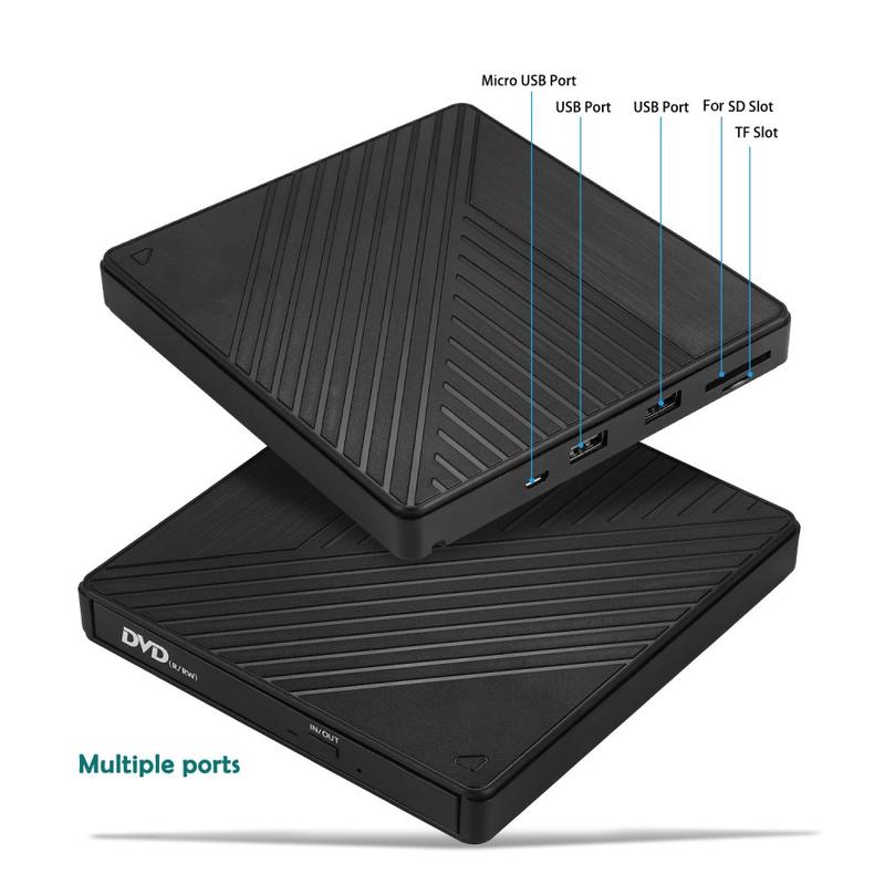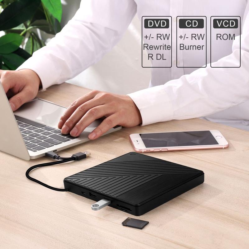 Förvandla din bärbara eller stationära dator till en komplett multimediahubb med denna mångsidiga externa optiska enhet. Den är perfekt för att titta på DVD-skivor, bränna data och hantera filer på flera enheter och kombinerar USB- och Type-C-anslutning med inbyggda SD- och TF-kortplatser för utökad funktionalitet.