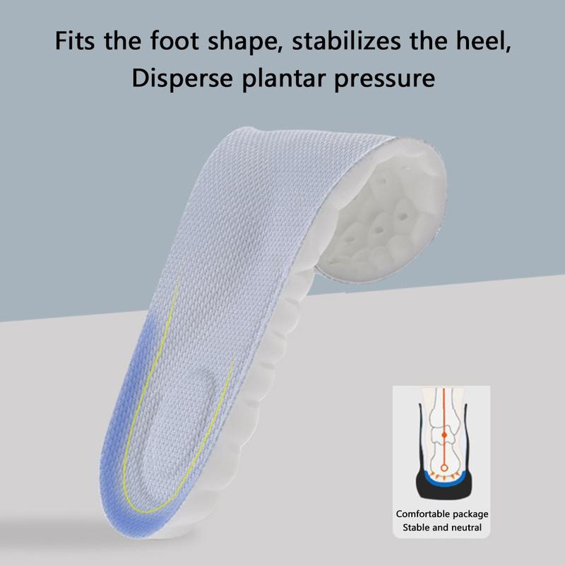 Mjuk och stretchig, ger utmärkt stötdämpning och dämpning, samtidigt som den minskar trycket på häl, knä och fotled, det är som att gå på moln, perfekt som en bekväm ersättningsinläggssula