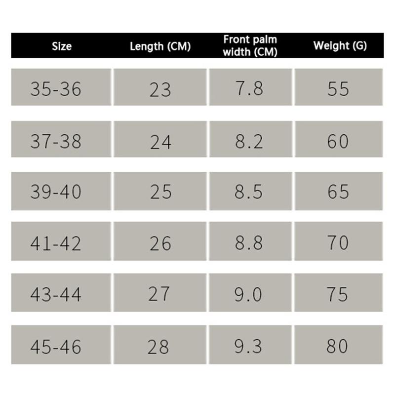 Storlek 45-46: Längd: 28 cm, Framfotsbredd: 9,3 cm, Vikt: 80 g