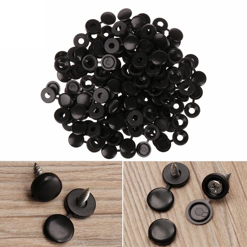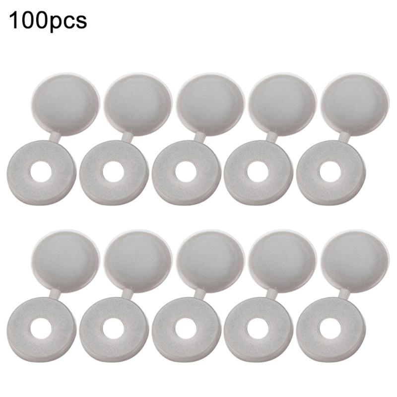 100 st. Gångjärnsförsedda skruvlock av plast - 13 mm ytterdiameter, 5 mm hål, snäppskruvlock för självgängande skruvar