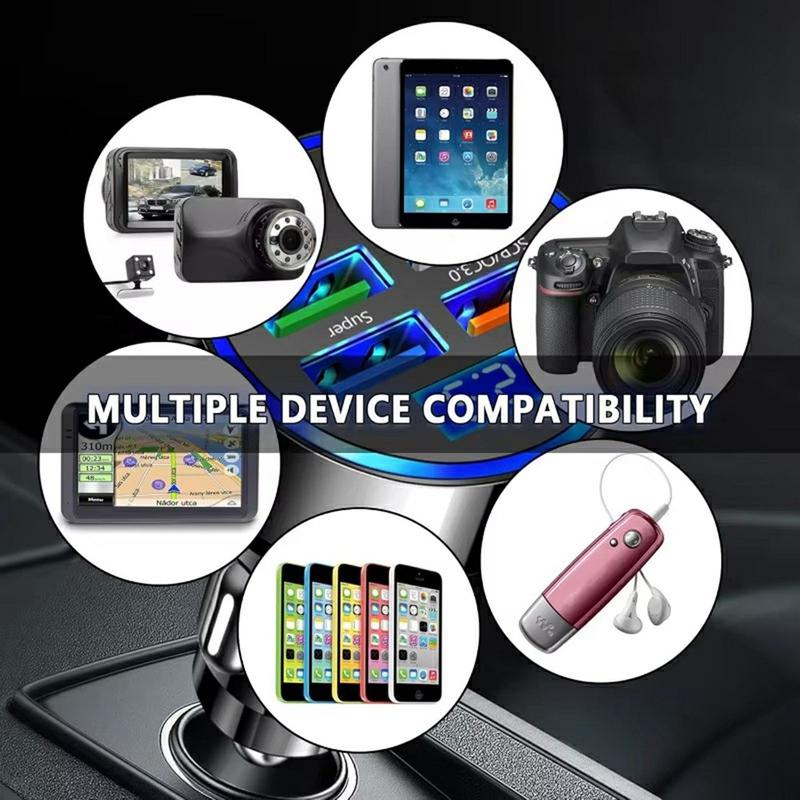 100W 6-portars billaddare är byggd för att hålla alla dina enheter strömförsörjda när du är på språng. Med en total uteffekt på upp till 100W är den tillräckligt kraftfull för att ladda bärbara datorer, surfplattor och smartphones samtidigt, vilket gör den till det perfekta tillbehöret för moderna förare.