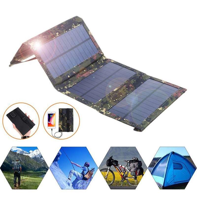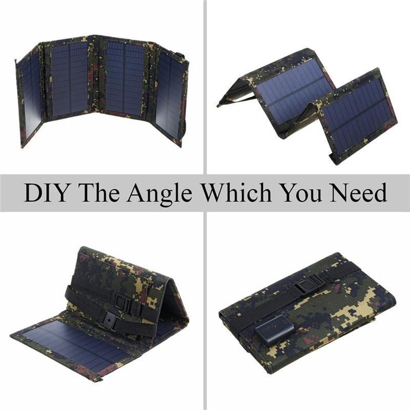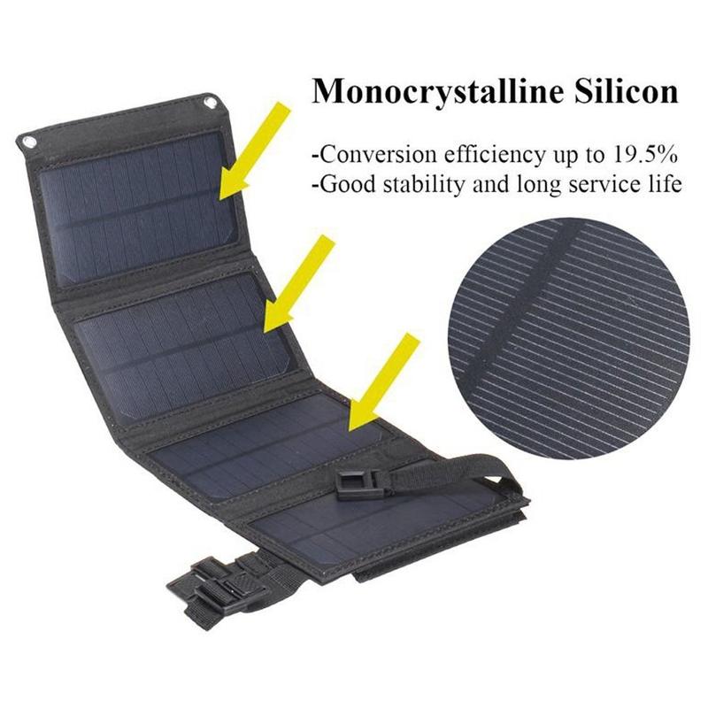 Den är tillverkad av hållbara, vattentäta material och är gjord för att klara verkliga utomhusförhållanden. Två starka karbinhakar gör att du kan hänga den på en ryggsäck eller ett tält så att panelerna kan vändas mot solen medan du rör dig. En intelligent IC-chip ökar säkerheten genom att skydda mot överbelastning, överurladdning, överström och kortslutning, vilket gör laddningen mer pålitlig när du är på resande fot.