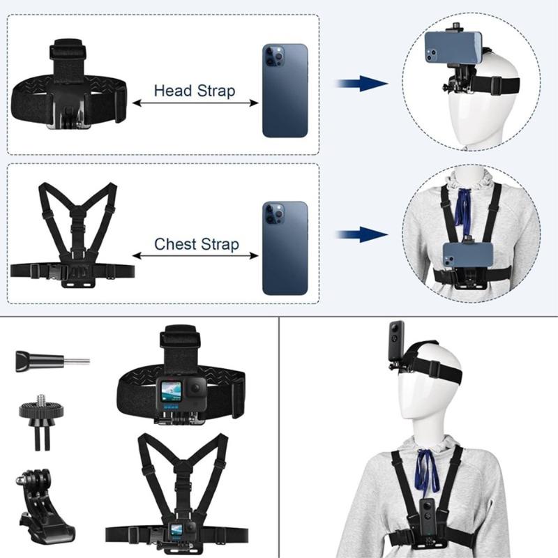 Detta 11-i-1-tillbehörsset är utformat för att leverera stabila förstapersonsbilder från extremsporter och utomhusaktiviteter. Huvudremmen och bröstselen ger en naturlig, uppslukande synvinkel - perfekt för mountainbike, skidåkning, motocross, paddling, klipphoppning, surfing och mycket mer.