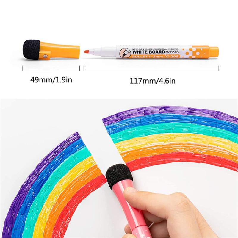 Bred tillämpning: 8 ljusa färger torra raderbara markörer kan appliceras på släta ytor, t.ex. whiteboard, porslin, plast, glas och så vidare, användbart för skola och kontor