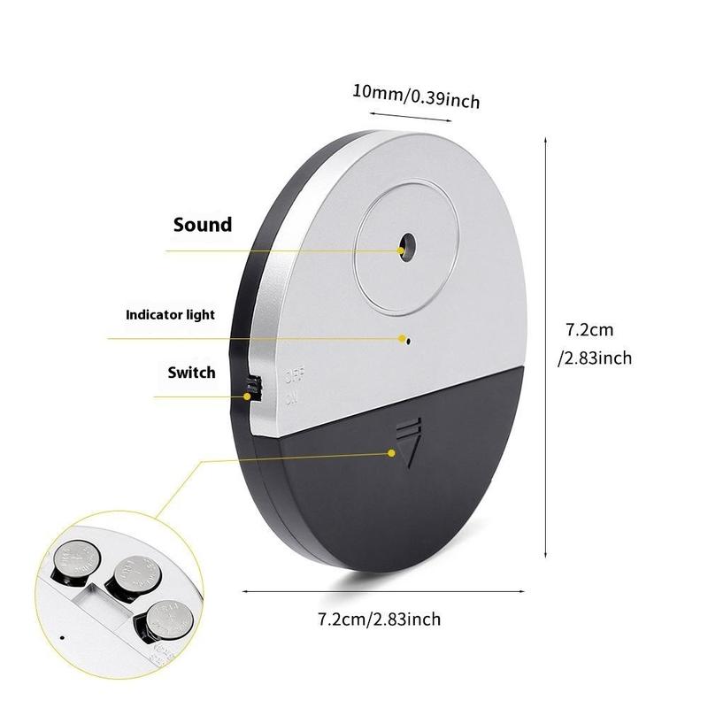 Skydda dörrar, fönster och vitriner på några sekunder. Denna vibrationssensor i handflatestorlek fästs diskret på glas eller trä och aktiveras fem sekunder efter att du tryckt på strömbrytaren. Vid sabotage utlöses en genomträngande 125dB-siren som skrämmer inkräktare och varnar grannar, medan en LED-lampa blinkar rött när de inbyggda LR44-cellerna börjar ta slut. Med en storlek på endast 72 mm x 10 mm och en vikt på 35 g smälter enheten in i hotellrum, lägenheter, butiker eller studentlyor utan borrning eller kablar.