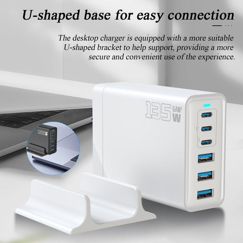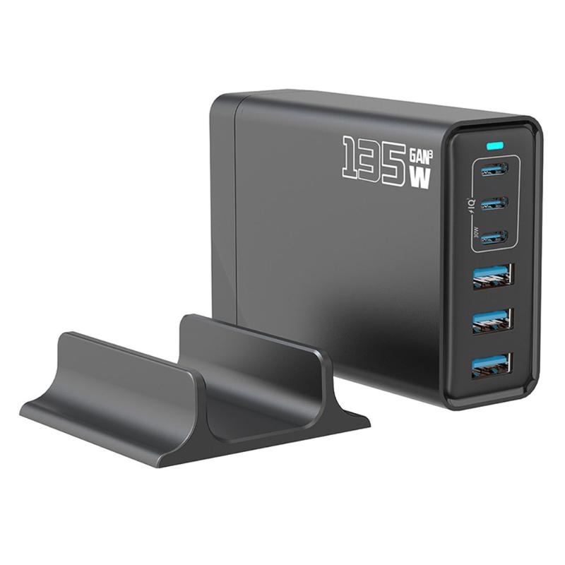 135W GaN skrivbordsladdare / 6-ports höghastighetsladdningsstation - 3x USB-C, 3x USB-A