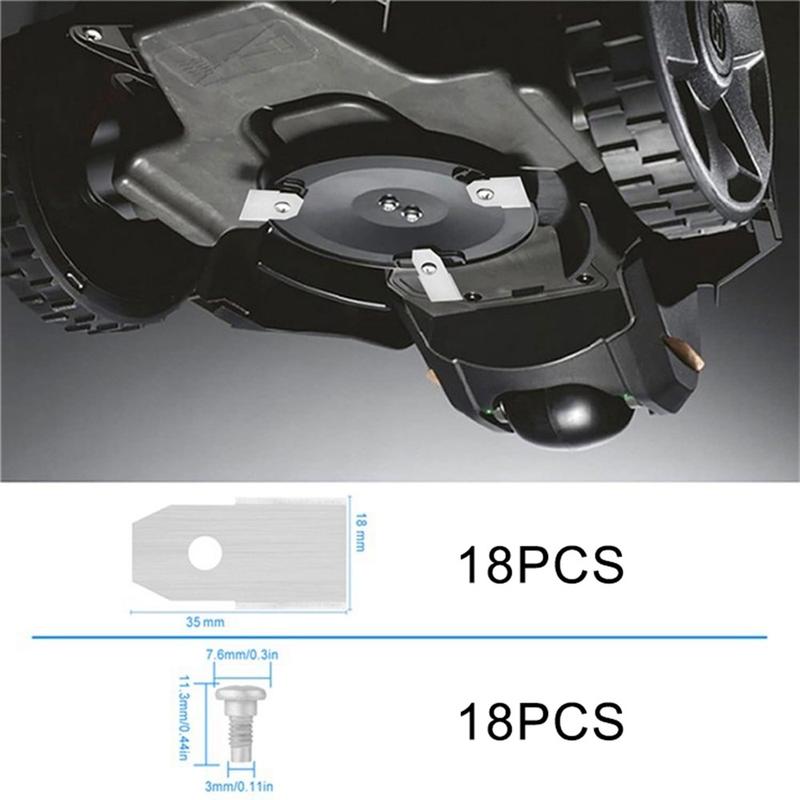 18-pack ersättningsblad i rostfritt stål - 35 × 18 mm, passar robotgräsklippare från Husqvarna / Gardena / McCulloch / Herkules / FLYMO / Telsing