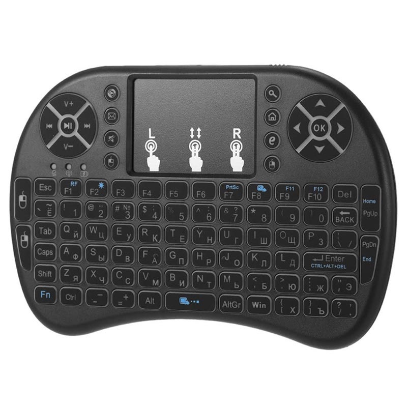 Detta plug & play tangentbord ger funktionalitet och praktisk användning. Med 92 knappar och en touchpad, har det allt du behöver, fullständigt qwerty tangentbord, multimedia kontroller, TV fjärr och PC gaming knappar. Inbyggd LED med tre färger som bakgrund gör detta tangentbord enkelt att använda i mörker.