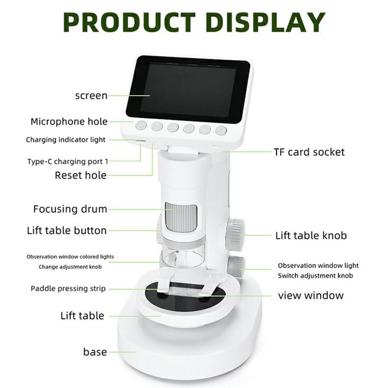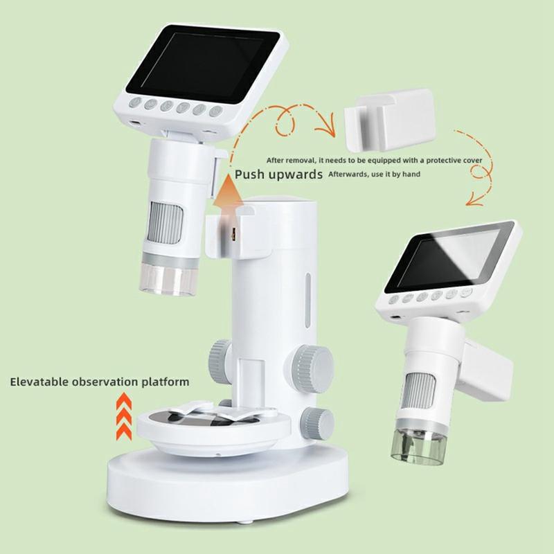 Digitalt mikroskop för barn 1000X / 2-i-1 handhållet och stationärt mikroskop med 3,5-tums HD-skärm och objektglas