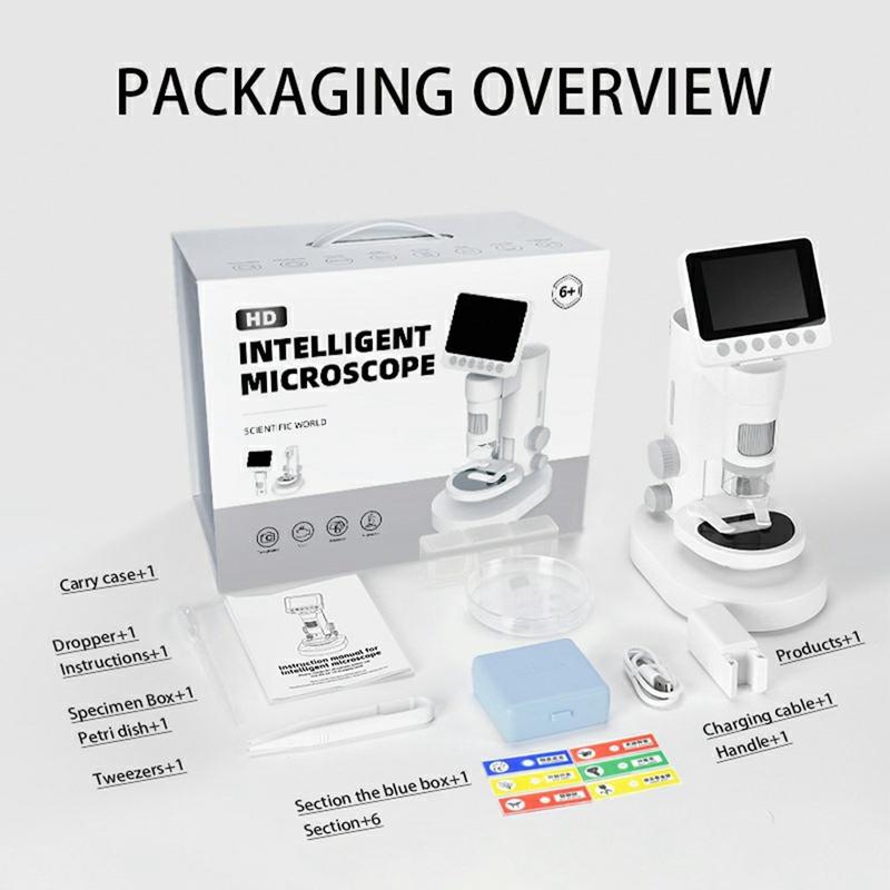 Detta mikroskop kombinerar utbildning, användarvänlighet och interaktivt nöje. Med en stor skärm, säker belysning och medföljande tillbehör erbjuder det ett komplett inlärningskit som uppmuntrar till nyfikenhet och praktiska upptäckter.