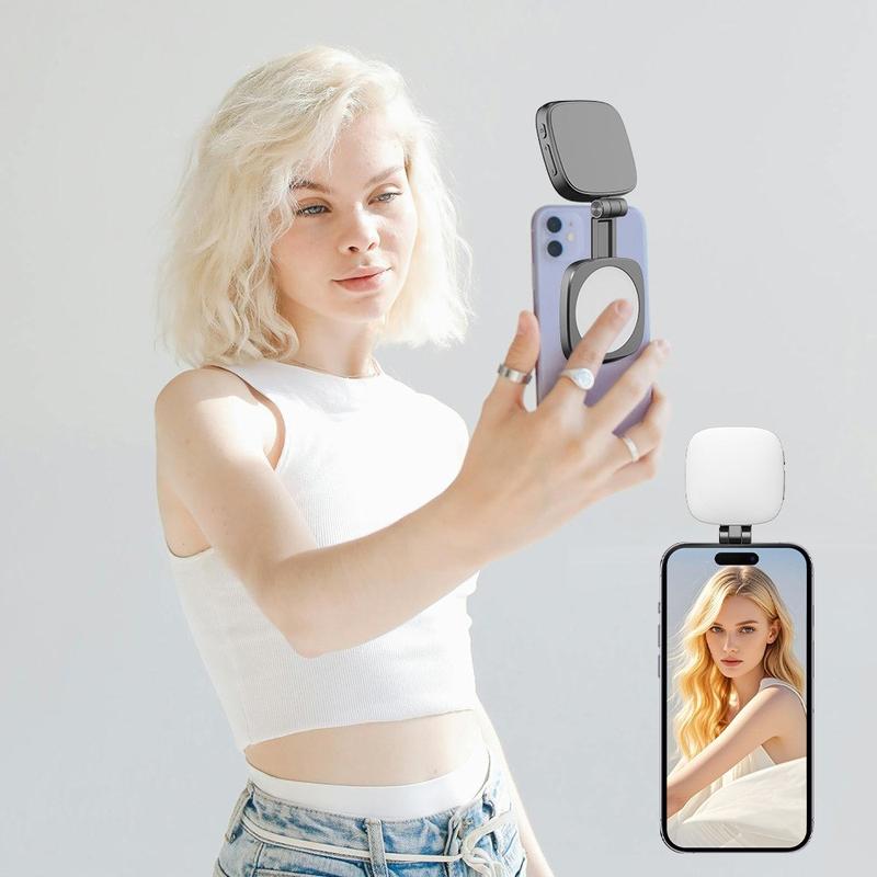 Uppnå perfekt belysning när som helst med denna 2-i-1 magnetiska LED Selfie Fill Light, utformad för smartphones och fotografering på språng. De högkvalitativa LED-pärlorna ger en mjuk och jämn belysning som förbättrar selfies, porträtt och videosamtal i svagt ljus. Tack vare det smarta magnetfästet sitter lampan säkert på din enhet för handsfree-användning, och med den integrerade sminkspegeln kan du göra snabba touch-ups innan du filmar eller fotograferar. Med ett inbyggt uppladdningsbart batteri och en kompakt design på 149 g är det här bärbara ljustillbehöret perfekt för resor, vlogging, livestreaming och vardaglig mobilfotografering.