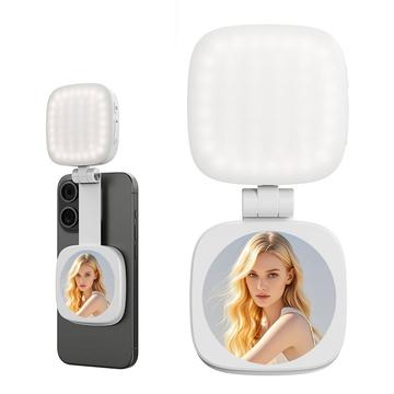 2-i-1 magnetisk LED-selfielampa med sminkspegel - bärbar lampa för smartphone-fotografering