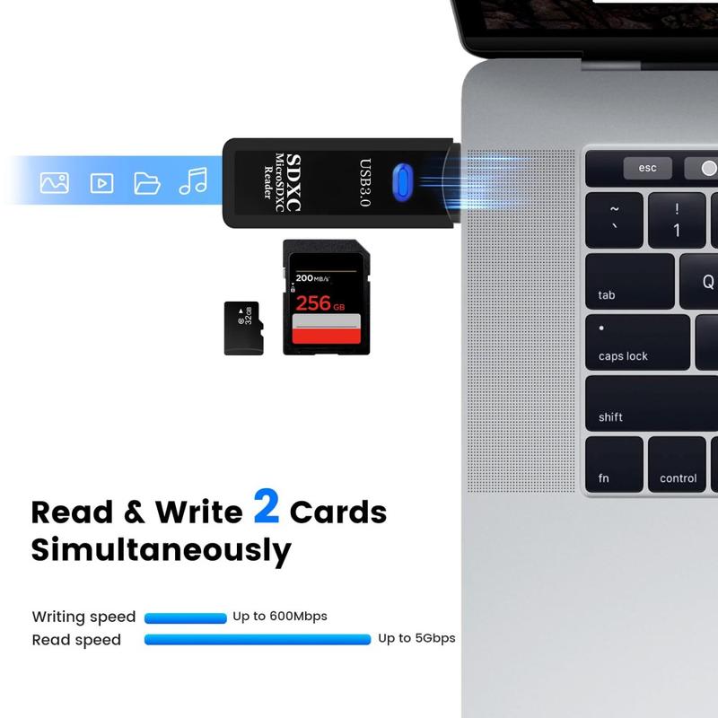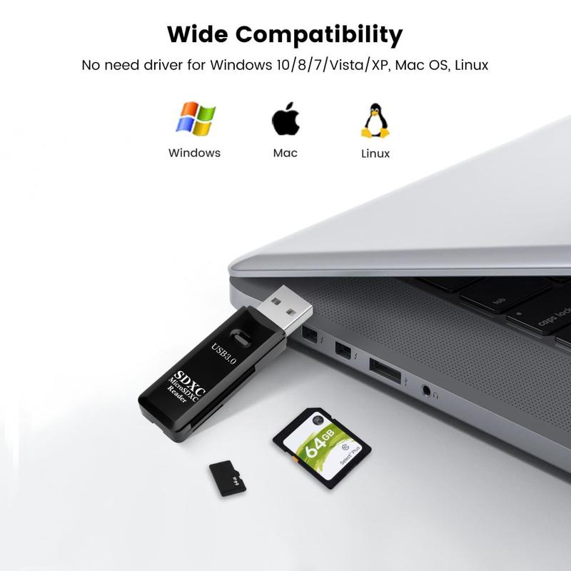 Denna 2-i-1 USB 3.0-kortläsare är ett praktiskt tillbehör för snabb inläsning och överföring av filer från SD- och TF-minneskort. Den är utformad för smidig vardagsanvändning, stöder ett stort antal vanliga kortformat och erbjuder höghastighetsprestanda via USB 3.0 för smidigare filhantering. Oavsett om du flyttar foton, videor, dokument eller annan data hjälper denna kompakta minneskortadapter till att förenkla processen hemma, på kontoret eller när du är på resande fot.