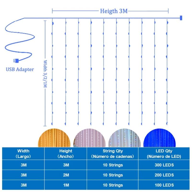 - 1 x 3m x 2m 200-LED ljusslinga för älvor