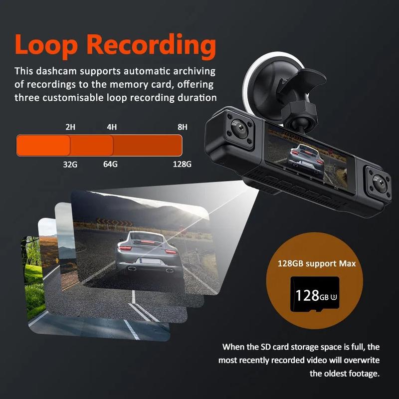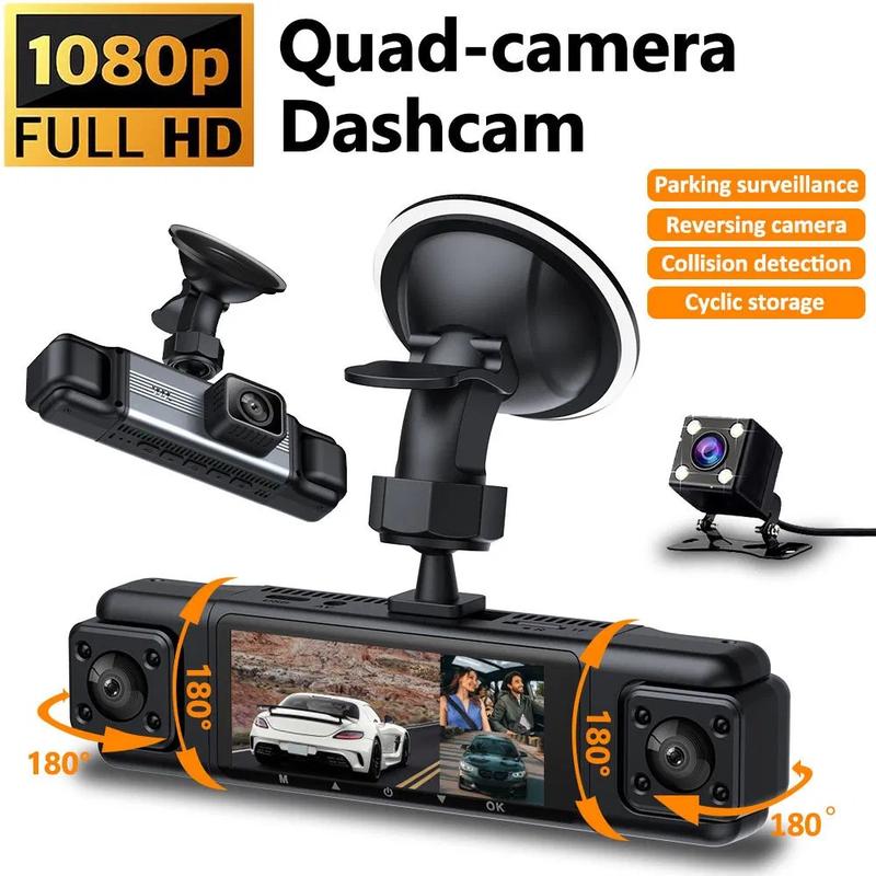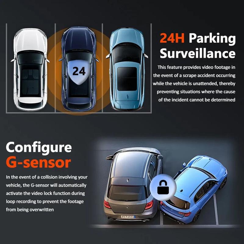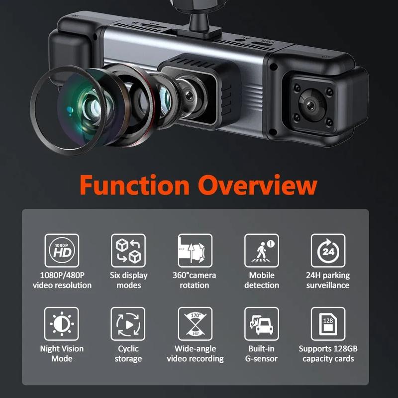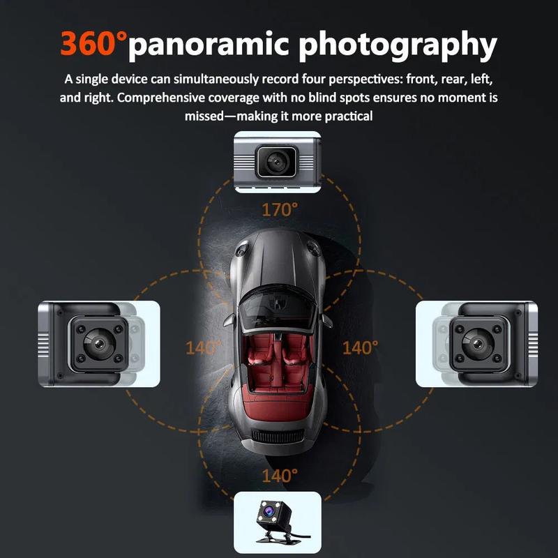 Håll dig säker och fullt skyddad på vägen med denna bilkamera med 3.0" IPS-skärm och 4 linser, utformad för att spela in din resa med exceptionell klarhet. Med en 1080P frontkamera och ytterligare tre 480P sido- och baklinser ger den fullständig allroundtäckning för en säkrare och mer självsäker körupplevelse.