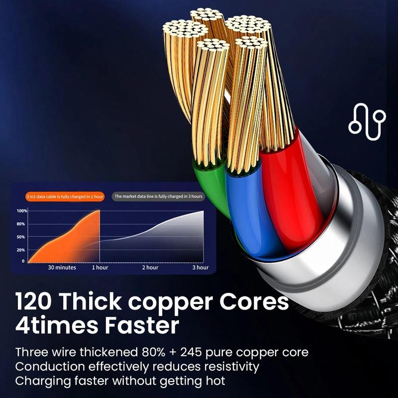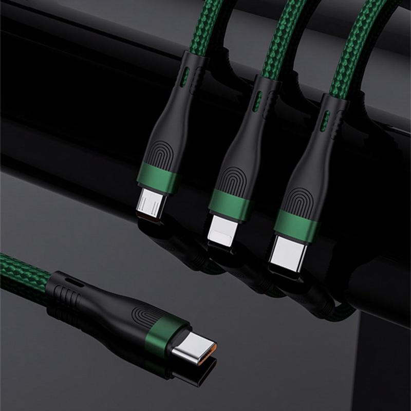 3-i-1 USB-C-kabel - PD 100 W snabbladdning, 1.2m, Lightning, USB-C, Micro USB