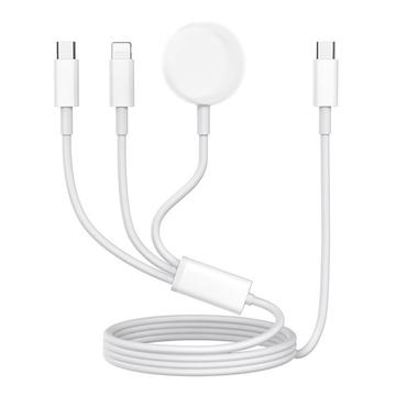 3-i-1 USB-C-laddningskabel till USB-C, Lightning, Apple Watch trådlös laddare - 1m