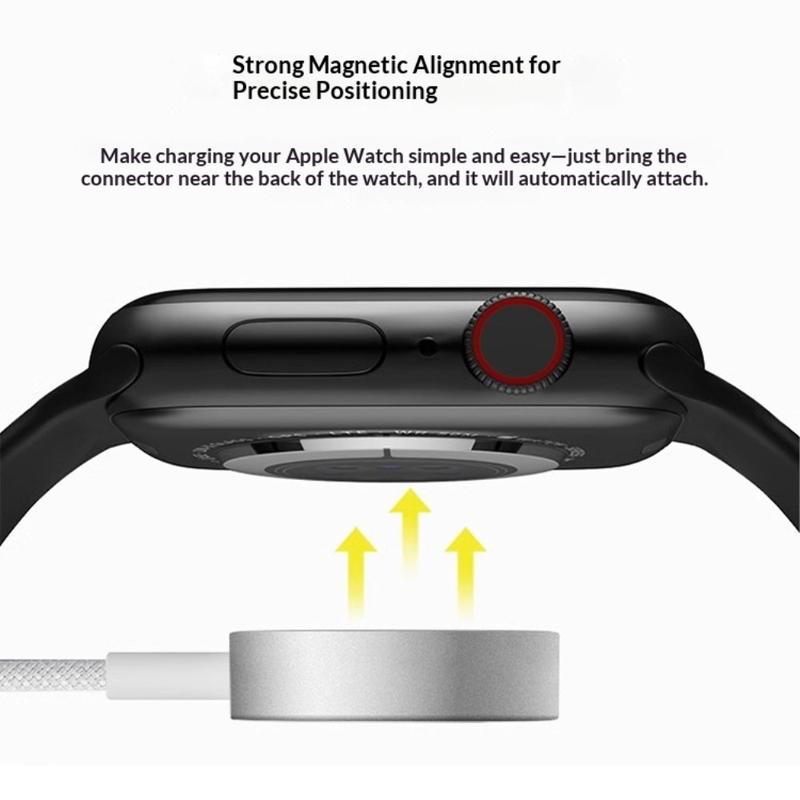 Den magnetiska laddningsdesignen möjliggör enkel anpassning till kompatibla enheter. Placera helt enkelt din Apple Watch på laddaren så snäpper den fast i rätt läge, vilket säkerställer stabil kontakt och effektiv strömöverföring.