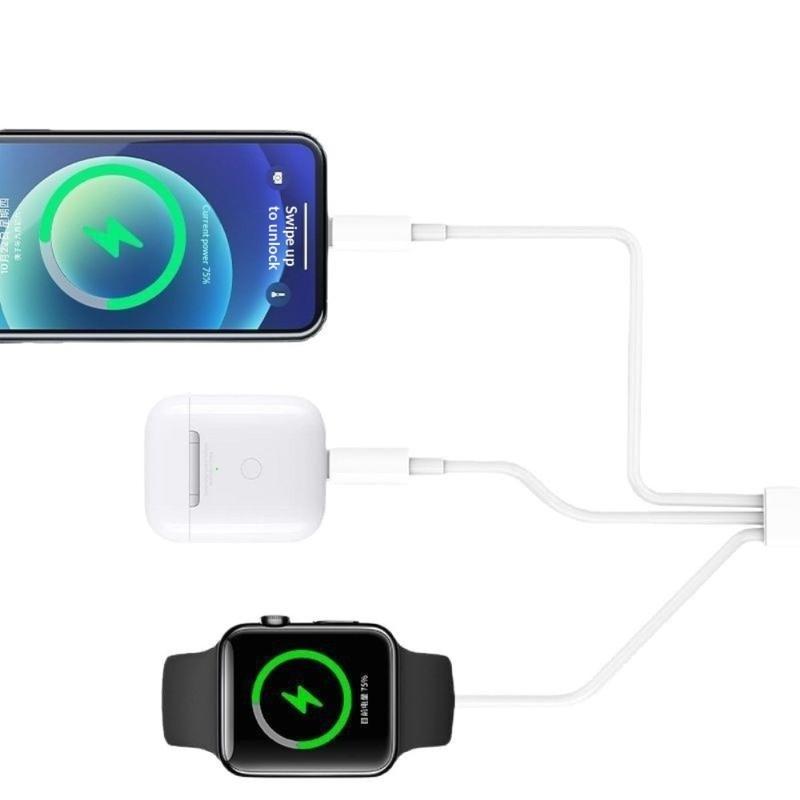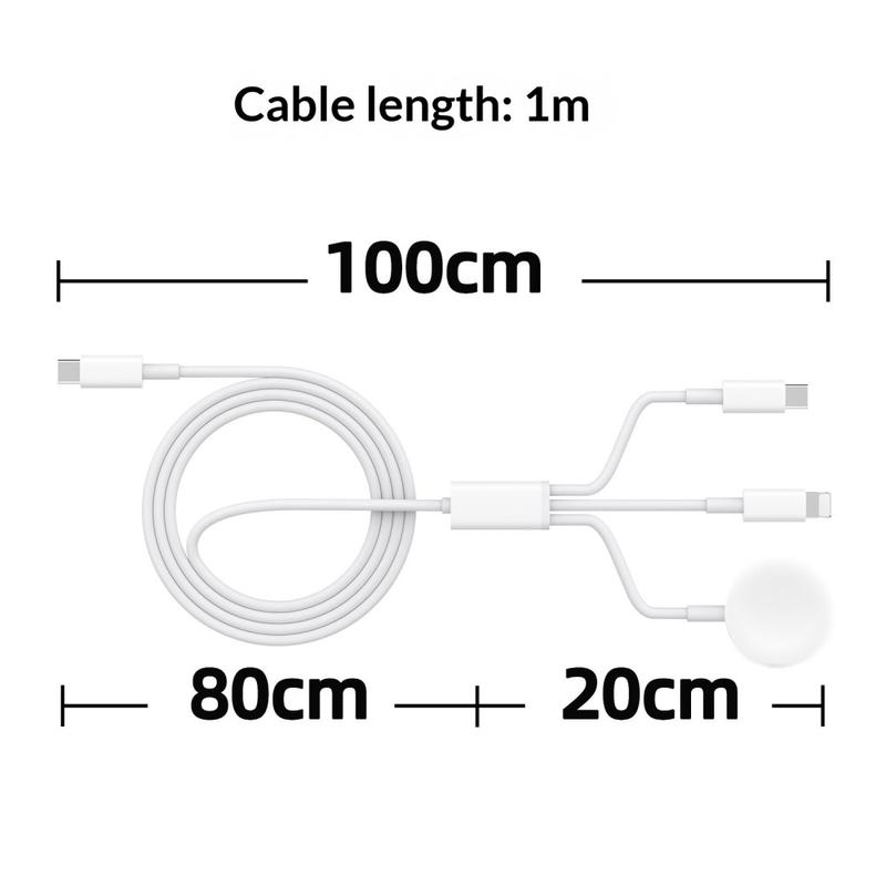 3-i-1-laddningskabeln är utformad för att förenkla den dagliga laddningen genom att kombinera flera funktioner i en praktisk kabel. Den stöder trådlös laddning för Apple Watch, vilket gör den till en idealisk lösning för skrivbord, nattduksbord och resor.