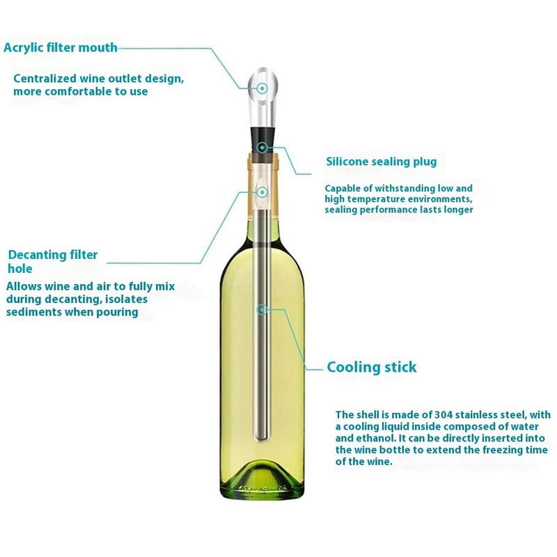 3-i-1 Vinkylstav i rostfritt stål - Iceless kylpinne med luftare och hällare