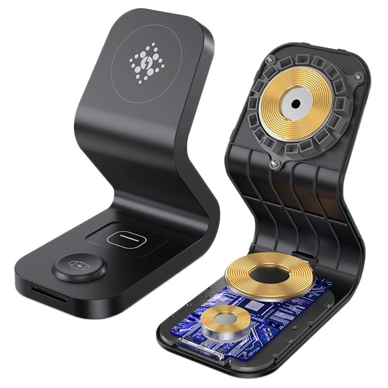 - B16 är en stilig 3-i-1 magnetisk trådlös snabb laddstation