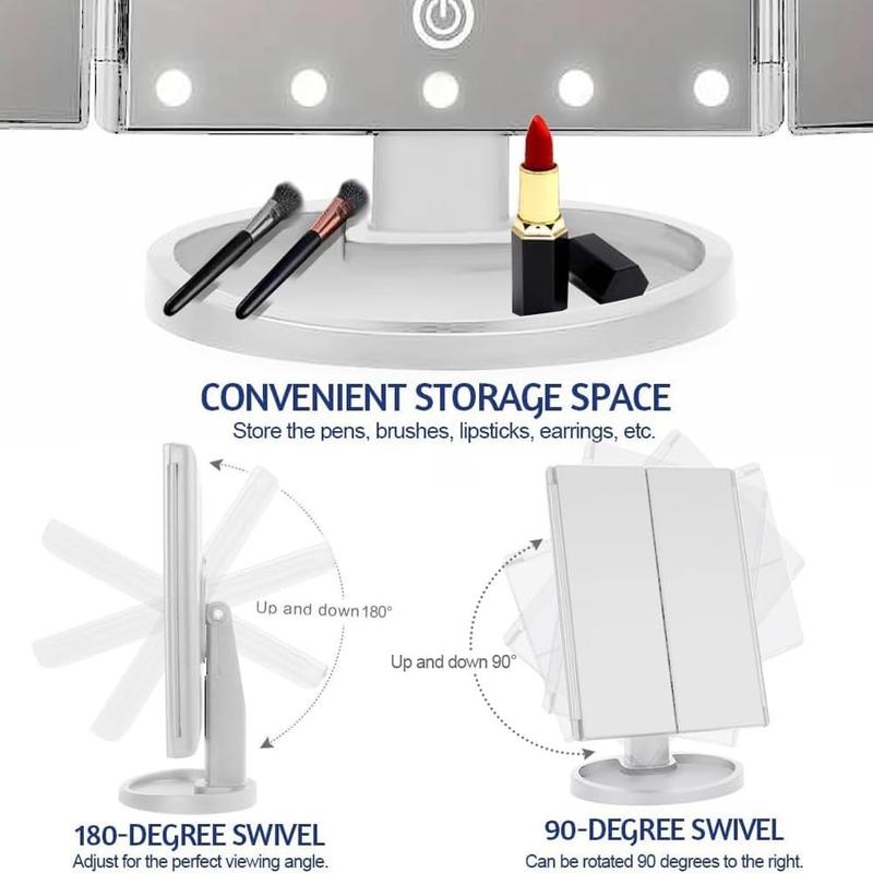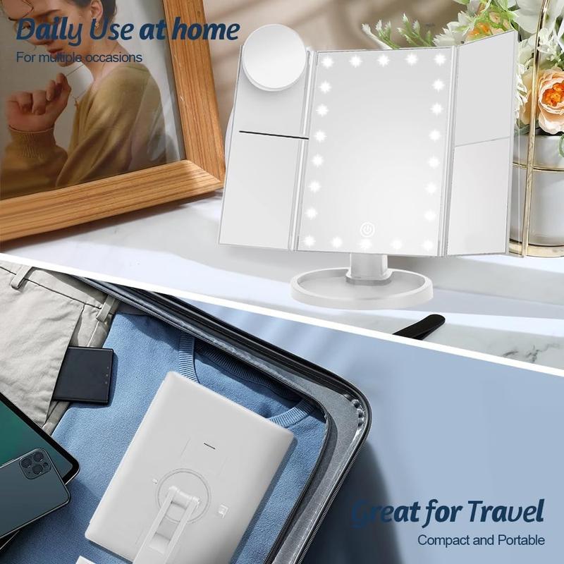- Vidvinkelvisning - Den tredelade designen ger en heltäckande vy över ansiktet, vilket gör det enklare att göra varje vinkel av smink och frisyr perfekt.
