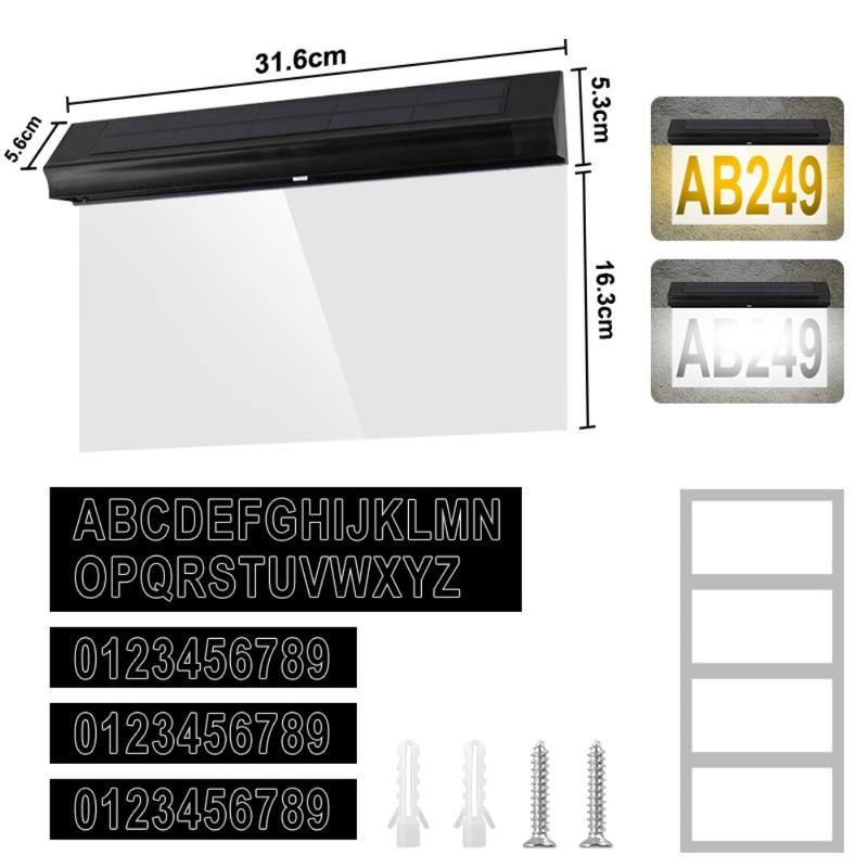 Adressskylt med 30 LED-lampor och anpassningsbara husnummer - LED-upplyst, vattentät och hållbar