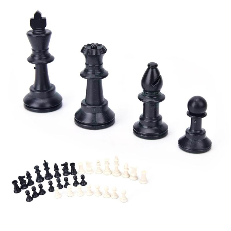 32-delat medeltida Staunton-schackspel - hållbara schackpjäser i svartvitt plast för turneringar och hemmaspel