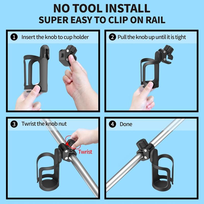 360-graders roterbar flaskhållare med snabbkopplingsknapp - universellt klämfäste för flaskor upp till 8 cm, passar rör 1,5-4,2 cm