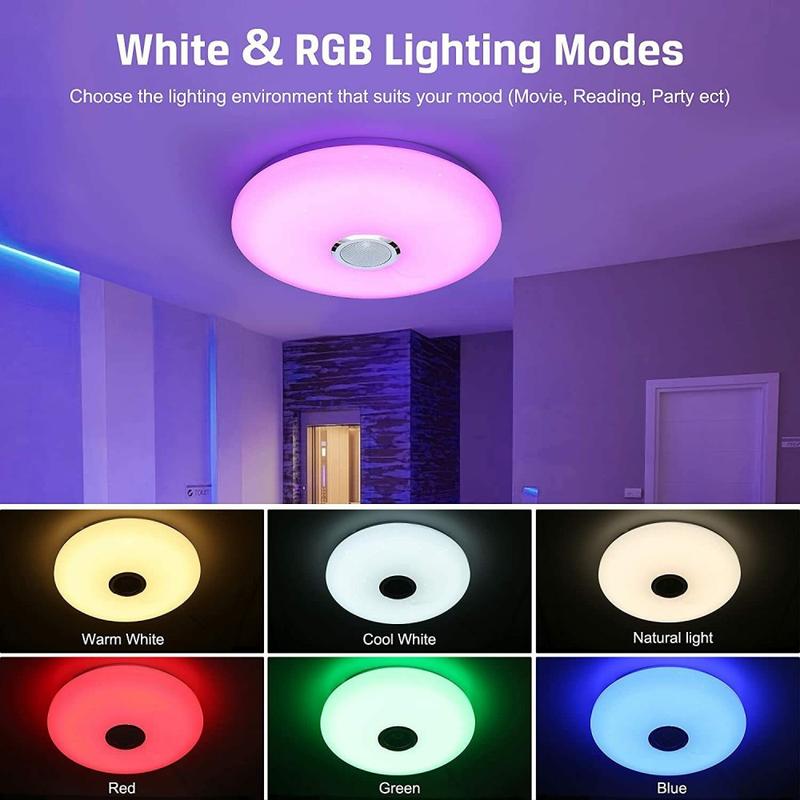 Smart Music Ceiling Light kombinerar belysning, musik och smart styrning i en elegant design. Den är idealisk för dem som vill förhöja sitt utrymme med anpassningsbara färgeffekter, kvalitetsljud och funktionell bekvämlighet - allt styrt med ett tryck eller fjärrkontroll.