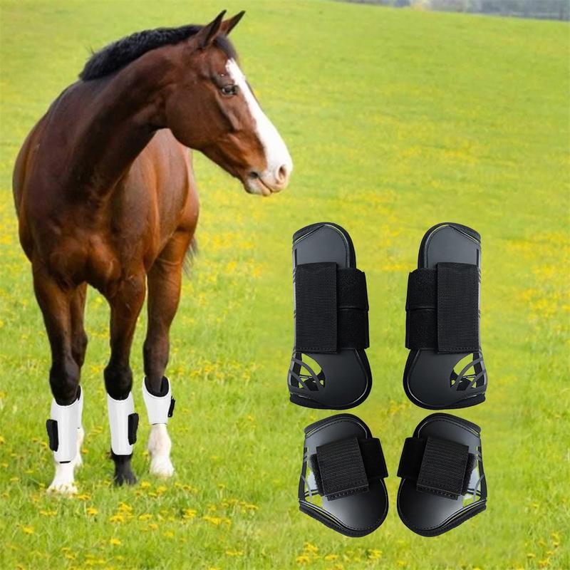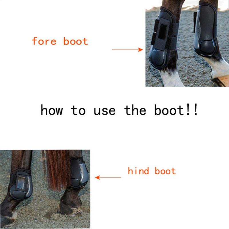 - Anatomisk formning: främre boots 255 x 112 mm för att täcka senor; bakre boots 158 x 118 mm skyddar bakbenets fotsula led.