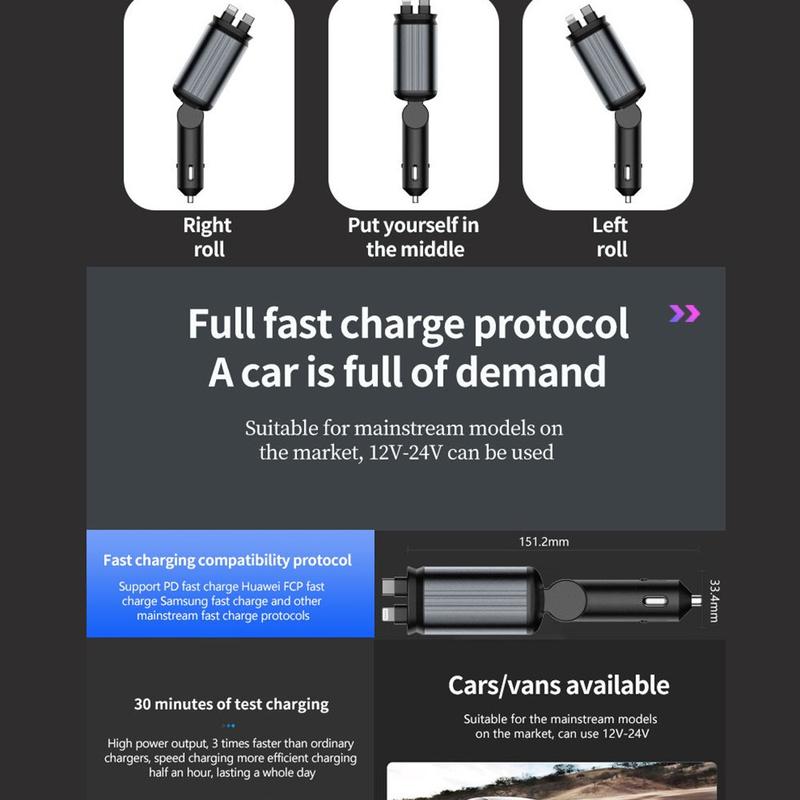 Den samlar en snabbladdare med hög effekt, två hållbara infällbara kablar, en dekorativ stjärnprojektor och en batterivoltmätare i en handflatestor enhet som minskar röran, sparar uttag och ger stil. Med uppdaterade PD/QC-protokoll och full 12-24 V-kompatibilitet är den en perfekt uppgradering för alla EU-förare.