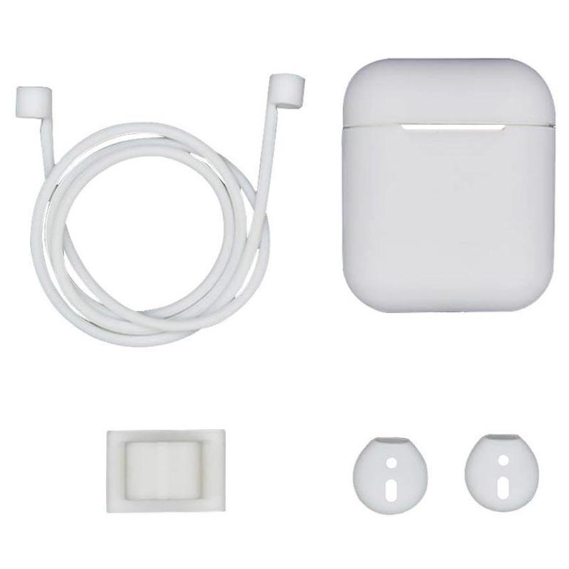 4-i-1 Silicone Tillbehörskit för Apple AirPods, AirPods 2 - silikonskal, nackrem, hörlurshållare, hörlursskal