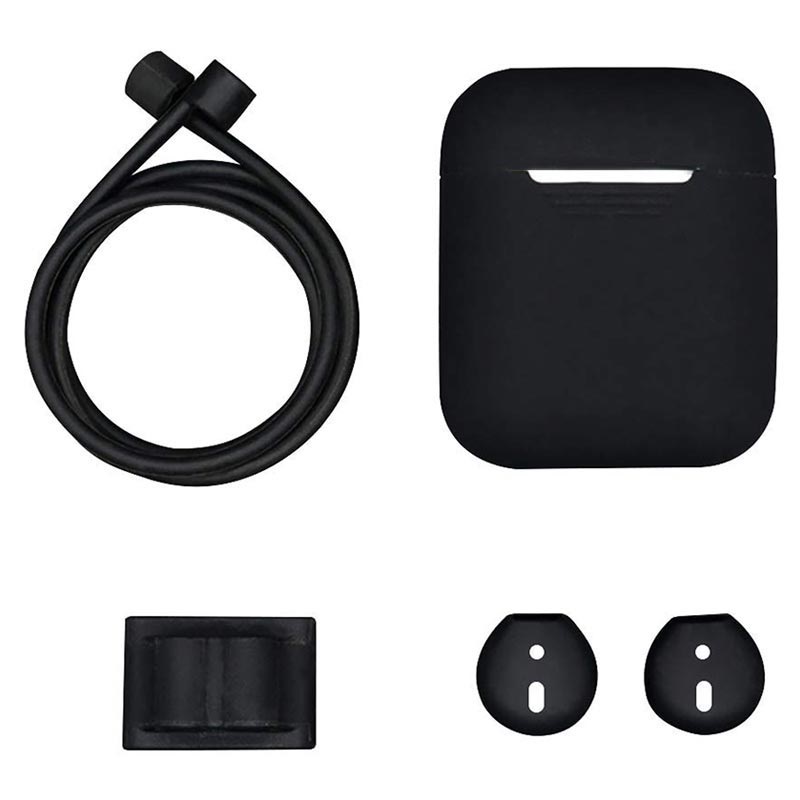 4-i-1 Silicone Tillbehörskit för Apple AirPods, AirPods 2 - silikonskal, nackrem, hörlurshållare, hörlursskal