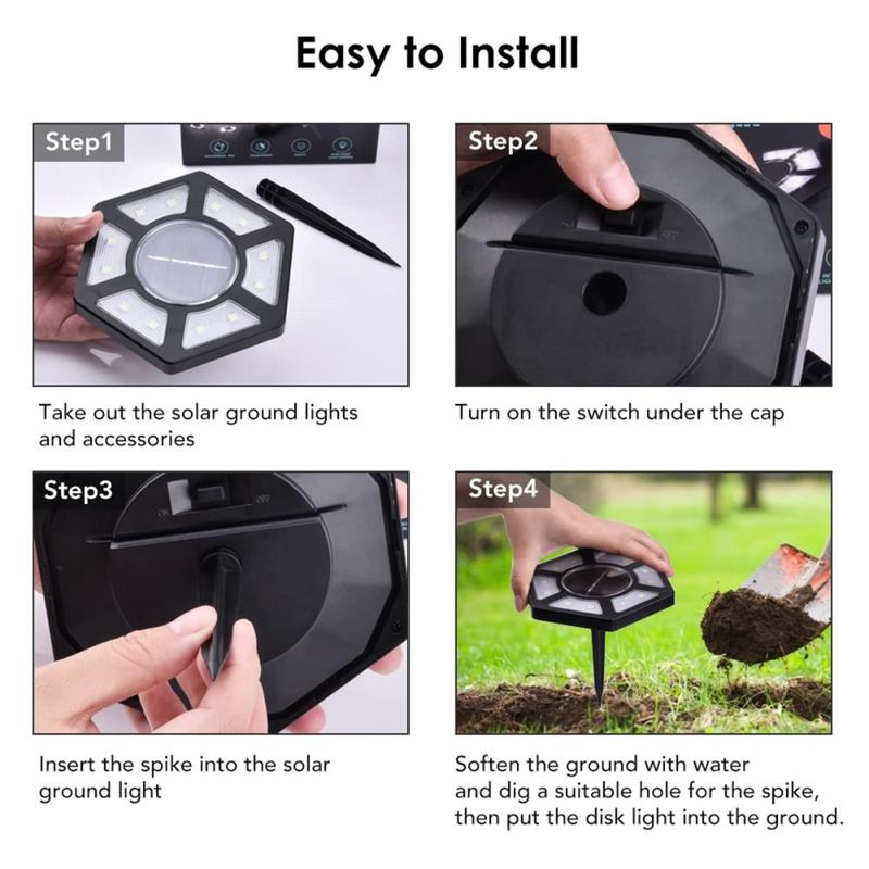 Lägg till 4-pack Solar Ground Lights i din trädgård och njut av enkel och elegant belysning - varje kväll, året runt.