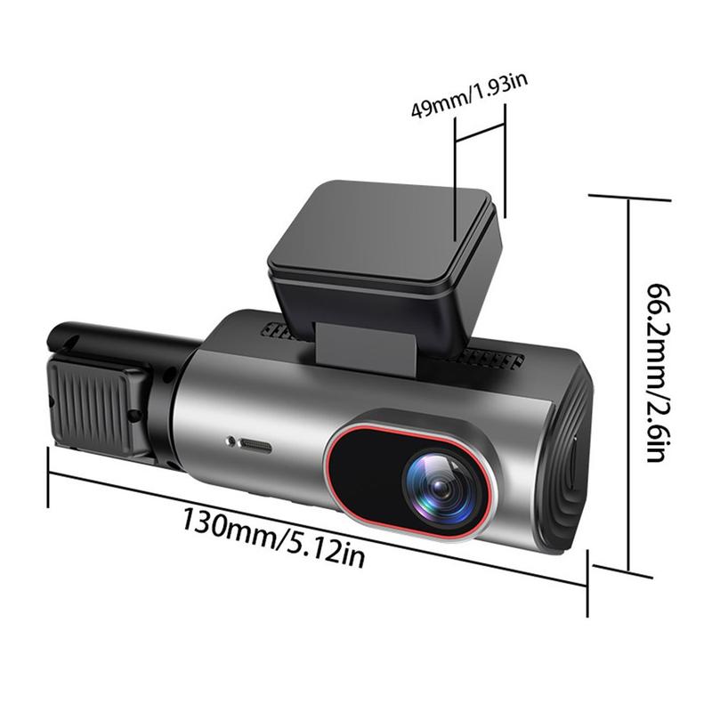 4-tums WiFi Dash Cam med dubbla linser - 1080p väg- och kabininspelare för mörkerseende med 170° superbred frontlins