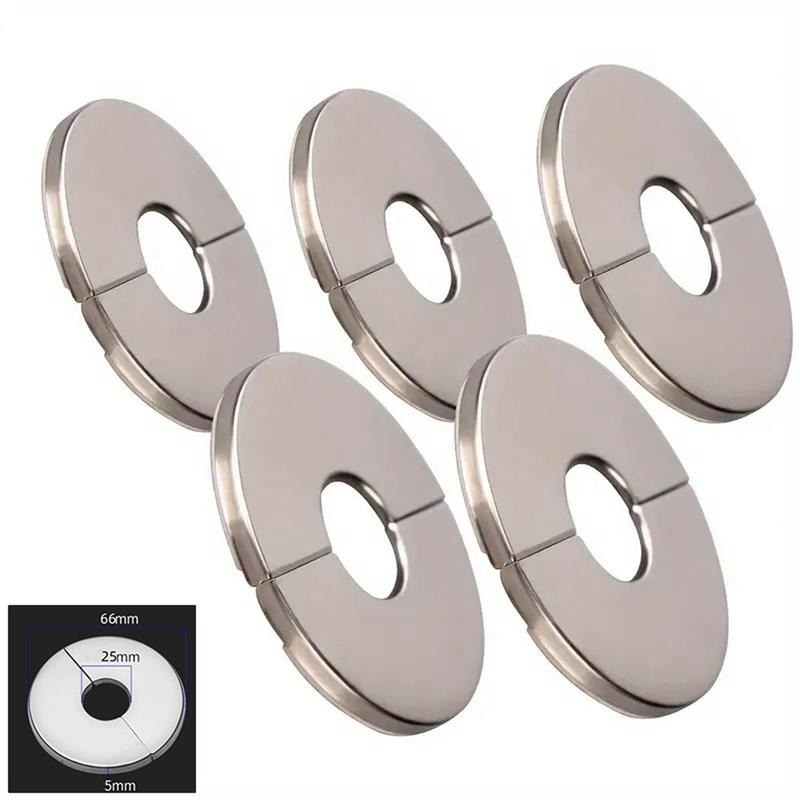 5 st. Flänsskydd för runda vägghål i rostfritt stål - självhäftande dekorativ platta för kranar och rör