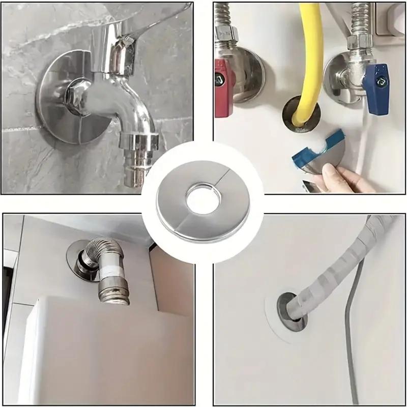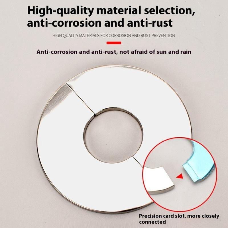 Dölja fula väggöppningar runt rör och kranar med dessa runda flänsskydd i rostfritt stål. Den starka självhäftande baksidan är utformad för snabb och verktygsfri installation och fästs direkt över hålet för att skapa ett rent och polerat utseende. De här skydden är tillverkade av slitstarkt, rostfritt rostfritt stål och står emot höga temperaturer, behåller sin form och ger långvarig prestanda i kök, badrum och tvättstugor.