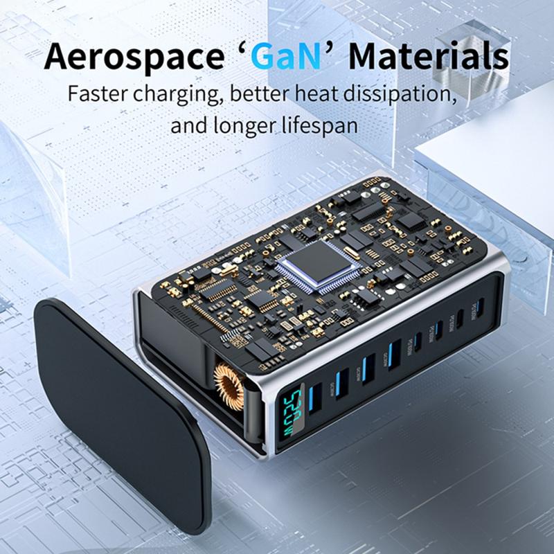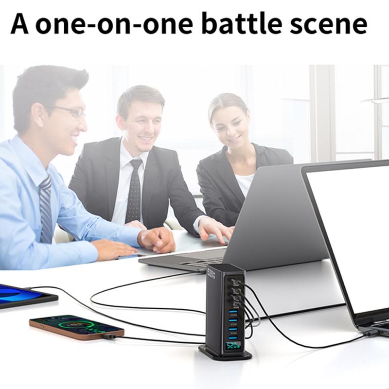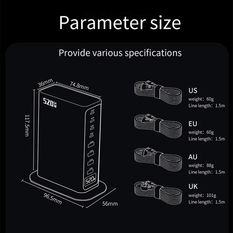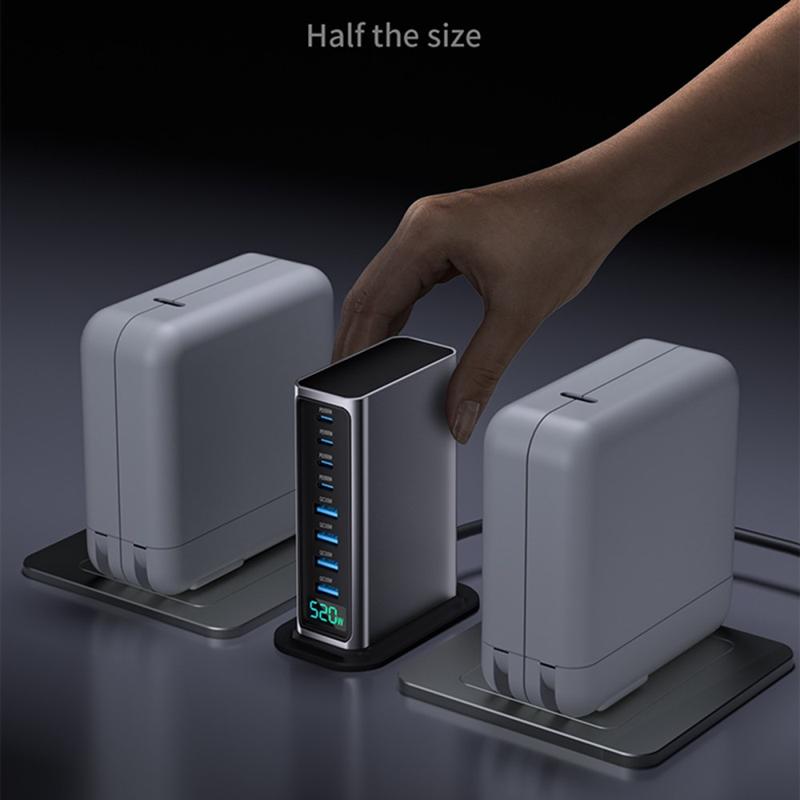 520W GaN 5.0 stationär laddningsstation med digital effektdisplay - 8 portar (4x USB-C upp till 100W + 4x USB-A) snabbladdare, PPS/PD/QC