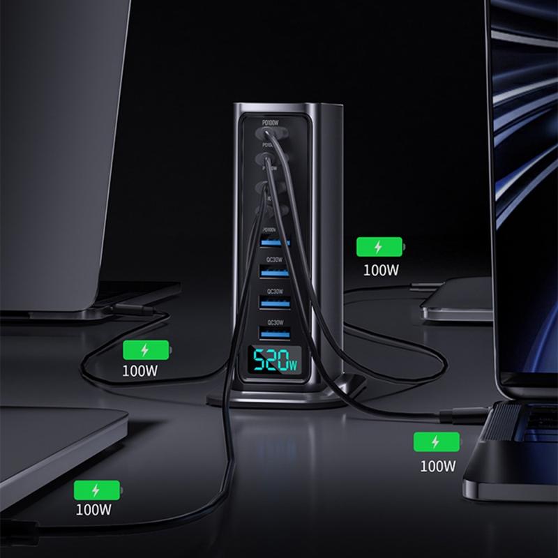 Om du vill ha en enda, tillförlitlig laddningslösning som kan ersätta en hög med adaptrar är det här rätt produkt för dig. Kapaciteten på 520W och layouten med 8 portar är gjorda för personer med många enheter, medan den digitala displayen ger verklig användbarhet - så att du snabbt kan se vad som händer utan att behöva gissa. Det är en praktisk uppgradering för alla som värdesätter ett rent skrivbord, färre väggkontakter och snabb laddning av olika typer av enheter.