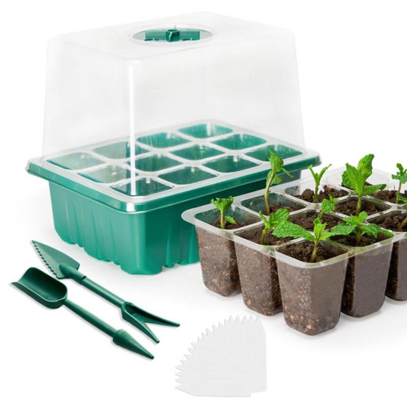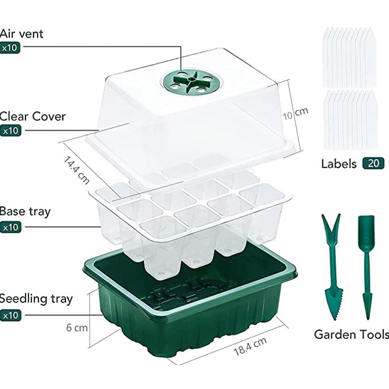 60-cellers startbrickor för fröer - odlingslåda för växthus med fuktkupol och dräneringssystem