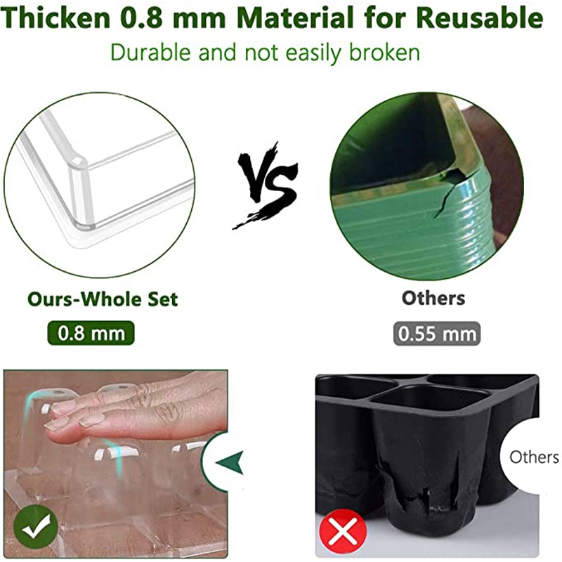 Detta 60-cell Seed Starter Tray Kit ger den perfekta växthusmiljön för groende blommor, grönsaker, örter och sticklingar. Med en hög kupol som kontrollerar luftfuktigheten, hållbara 0,8 mm brickor och dräneringshål i botten hjälper den dina växter att gro snabbare och växa friskare.