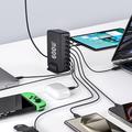 Ladda hela din installation från en kompakt hubb. Denna 600W GaN-laddningsstation för skrivbord är byggd för upptagna skrivbord, delade hushåll och tekniktunga resekit, så att du kan ladda upp till 8 enheter samtidigt. Med 5 USB-C-portar och 3 USB-A-portar är den redo för allt från bärbara USB-C-datorer med hög effekt till telefoner, surfplattor, öronsnäckor och powerbanks. Stöd för PD3.1 och QC3.0 säkerställer snabbladdning på kompatibla enheter, medan intelligent strömfördelning automatiskt anpassar effekten beroende på vad som är anslutet. Säkerhetsskydd i flera lager gör att laddningen förblir stabil och bekymmersfri, även när flera enheter är inkopplade.