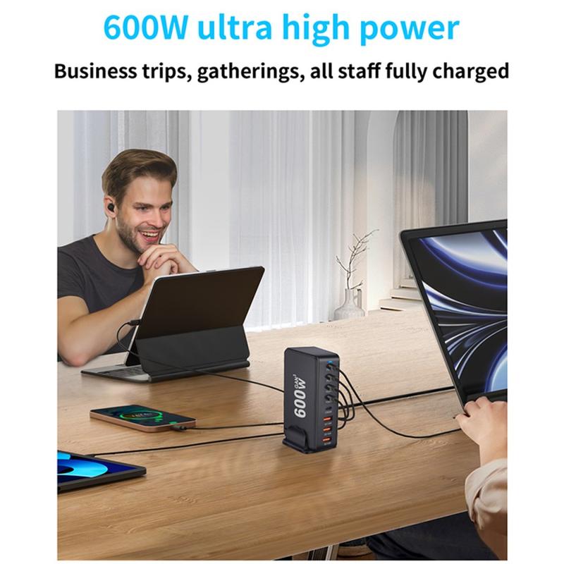 - Massiv total uteffekt på 600W för laddning av flera enheter från en station