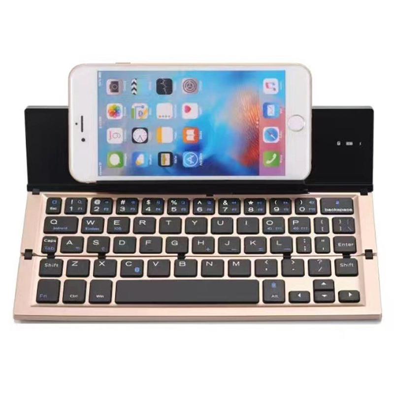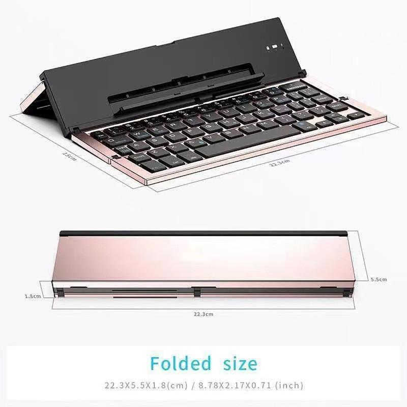 608 Tri-Fold trådlöst tangentbord med dubbelkanalsomkoppling och stativ - aluminiumlegering