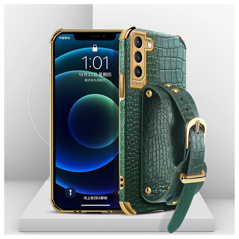 - 6D Crocodile hybridskal med handrem till Samsung Galaxy S21 5G