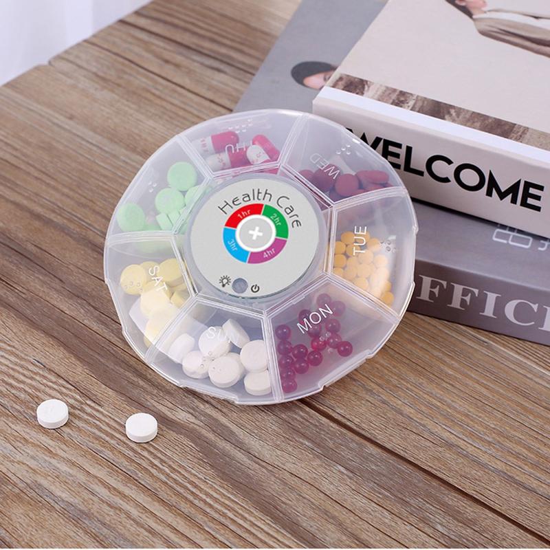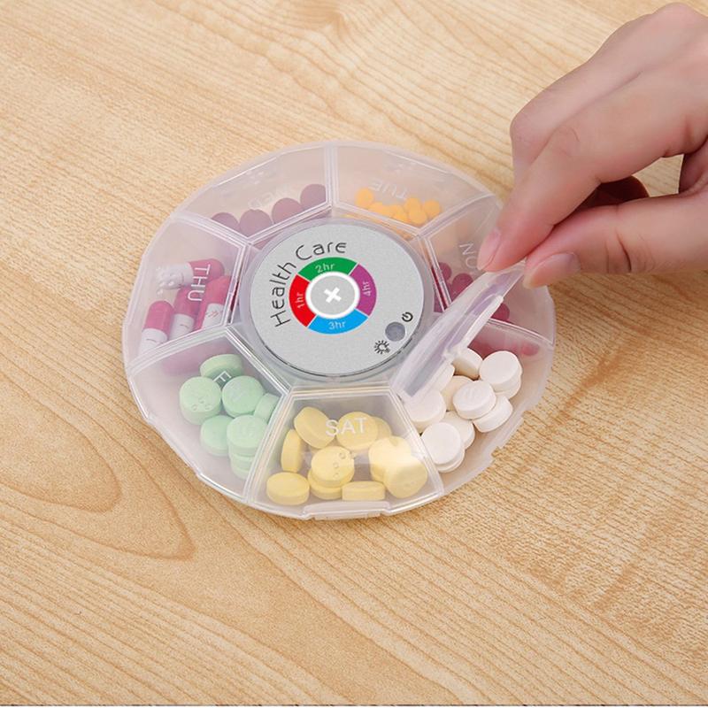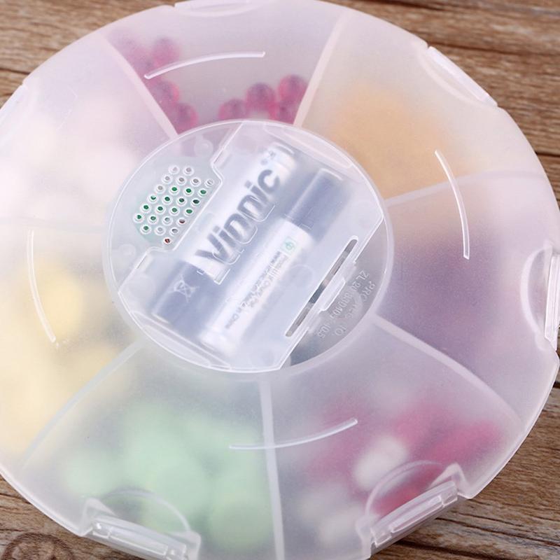 - 7 förseglade fack - ett klick roterar till nästa dos; invändiga lock håller olika tabletter fräscha och åtskilda.